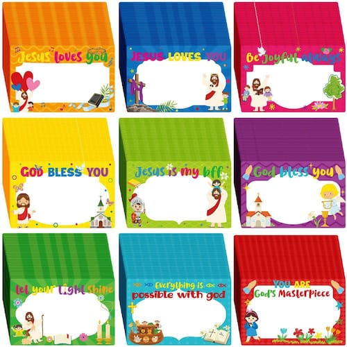 Todos esses crachás de papel com versículos bíblicos são desenhados com palavras que abençoam Deus, o que faz com que tenham mais significado e bênção do que outros adesivos com crachás.