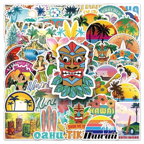 Tema de praia havaiana: inclui 50 adesivos vibrantes e tropicais com tema de praia havaiana, perfeitos para os amantes do verão e para aqueles que querem dar um toque do Havaí aos seus itens pessoais. Vinil à prova d'água: feitos de material de vinil de alta qualidade, esses adesivos são à prova d'água, duráveis e ideais para uso interno e externo. Perfeito para personalização: ótimo para personalizar seu laptop, garrafa de água, skate, capa de celular e geladeira, adicionando uma atmosfera criativa e divertida aos seus itens favoritos. Decalques removíveis: esses decalques são fáceis de descascar e colar, sem deixar resíduos, garantindo uma aplicação e remoção sem complicações. Variedade de designs: o pacote inclui uma mistura de designs divertidos, como flores tropicais, pranchas de surfe, cabeças de Tiki, pôr do sol e muito mais, oferecendo uma combinação perfeita de estilos vibrantes, retrô e modernos.