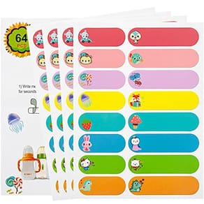 Etiquetas de mamadeiras para creches, 64 peças de material escolar, adesivos com nomes para crianças, rótulos de creche à prova d'água, autolaminados, laváveis na máquina de lavar louça, rótulos pré-escolares para bebês com canudinho, lancheira