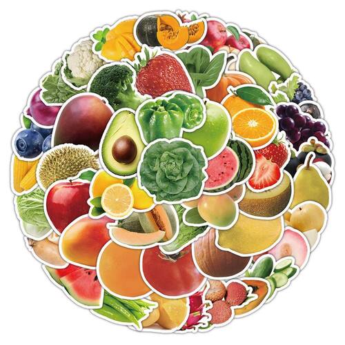 Adesivos de frutas e vegetais, maçãs, abacaxi, 60 unidades