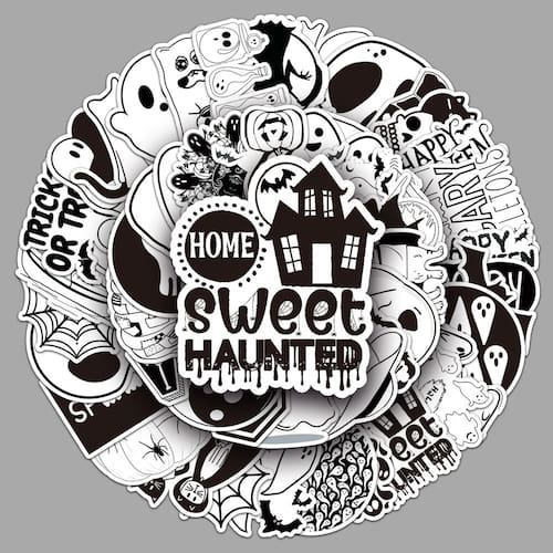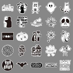 Design assustador de Halloween: inclui 50 adesivos de vinil exclusivos com ilustrações em preto e branco com temas de Halloween, como fantasmas, abóboras, casas mal-assombradas e decorações misteriosas, perfeitos para dar um toque assustador aos seus itens. Material de vinil durável: feitos de vinil de alta qualidade, esses adesivos são à prova d'água, garantindo que permaneçam intactos durante a chuva ou o sol, ideais para uso interno e externo. Aplicação versátil: perfeita para decorar uma variedade de superfícies, incluindo laptops, malas, carros, cadernos e álbuns de recortes, permitindo que você crie uma atmosfera divertida e festiva de Halloween em qualquer lugar. Fácil de aplicar e remover: os adesivos são fáceis de descascar e colar, com um adesivo forte que não deixa resíduos quando removidos, tornando-os perfeitos para decorações temporárias. Ideal para diversão no Halloween: ótimos para comemorar o Halloween, esses adesivos divertidos e assustadores são o acessório perfeito para seus itens pessoais ou como decoração de festa para crianças e adultos.