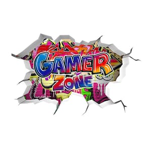 Material: PVC Tamanho: 40x60 cm 3D Gamer Zone Design — Adesivo de parede ousado em estilo grafite com efeito de parede rachado, criando uma atmosfera de jogo realista. Perfeito para salas de jogos — Adiciona uma atmosfera colorida e energética a quartos, salas de estar, lounges ou áreas de jogos dedicadas. 🧩 Fácil de aplicar e remover — Material de PVC autoadesivo, instalação simples de descascar e colar, removível sem deixar resíduos. Tamanho de tela grande — mede 40 x 60 cm, tamanho atraente para realçar paredes acima de mesas, TVs ou monitores. Material de vinil durável — impermeável, resistente ao desbotamento e duradouro, tornando-o ideal para adolescentes e adultos.
