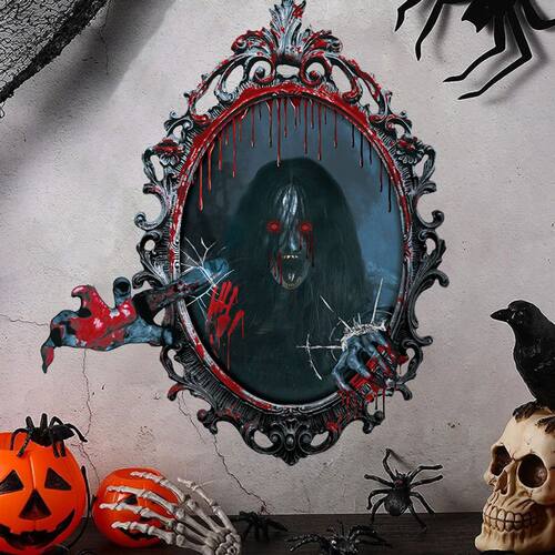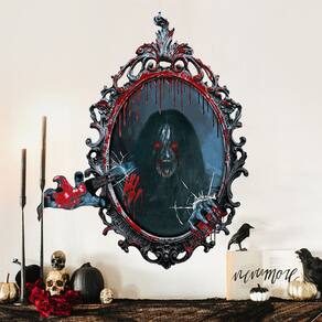 Material: PVC Tamanho: 40 x 60 cm Haunted Mirror Ghost Design Com uma mulher fantasmagórica aterrorizante com olhos vermelhos brilhantes, este adesivo de parede cria um efeito de terror assustador para o Halloween. Ilusão de espelho quebrado 3D A moldura exclusiva de espelho rachada com detalhes em sangue faz com que o decalque pareça uma pintura assombrada saindo da parede. Material de PVC durável Feitos de PVC ecológico e impermeável, esses decalques de papel de parede são reutilizáveis, resistentes ao desbotamento e fáceis de limpar. Fácil aplicação e remoção Os decalques autoadesivos de arte de parede podem ser aplicados em superfícies lisas, como paredes, portas, janelas ou móveis, e removidos sem deixar resíduos. Decoração perfeita de Halloween Ideal para casas mal-assombradas, festas temáticas, bares ou salas de estar, aprimorando a atmosfera assustadora do Halloween.
