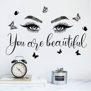 Material: PVC Tamanho: 30x60cm Chic Eye & Quote Design — apresenta elegantes olhos ilustrados, borboletas e a frase motivacional “Você é linda” para um toque artístico estiloso. Toque de quarto versátil — perfeito para quartos, salas de estar, penteadeiras, salas de maquiagem ou paredes de escritórios para criar uma atmosfera inspiradora e moderna. Fácil aplicação DIY — Feito de PVC autoadesivo, aplicação simples de descascar e colar, removível sem deixar resíduos ou danificar a tinta. Durável e impermeável — O PVC impermeável e resistente ao desbotamento garante detalhes vívidos e uma decoração duradoura, fácil de limpar com um pano úmido. Formato de tamanho médio — mede aproximadamente 30x60 cm, ideal para fundos de parede, espelhos ou layouts criativos em espaços pessoais.