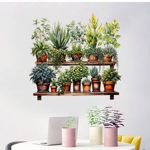 Material: PVC Tamanho: 30x60 cm 2 folhas, o tamanho total pode ser 56x59 cm Exibição de plantas animada: apresenta uma prateleira vibrante cheia de vários vasos de plantas, perfeita para adicionar um toque natural à decoração da sua casa. Ideal para decoração de casa: adequado para salas de estar, quartos, corredores ou cozinhas, trazendo frescor e um ambiente aconchegante a qualquer espaço. Fácil instalação: O material de PVC autoadesivo permite uma aplicação rápida e fácil sem resíduos ou danos nas paredes. Design versátil: funciona bem com estilos de casa modernos, boho ou minimalistas, aprimorando o ambiente com um tema verde e botânico. Durável e de alta qualidade: feito de PVC premium, à prova d'água e resistente ao desbotamento, garantindo beleza duradoura e cores vivas.