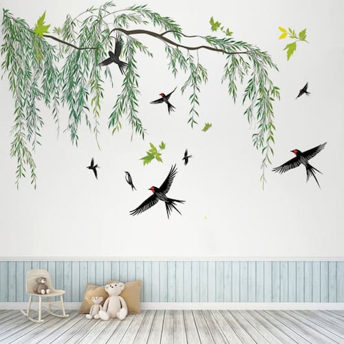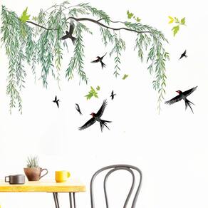 Material: PVC Tamanho: 60 x 90 cm Spring Nature Design — apresenta elegantes galhos de salgueiro e andorinhas voadoras, criando uma atmosfera sazonal fresca e animada. Material de PVC durável — Feito de PVC ecológico e impermeável que é seguro, durável e fácil de limpar em superfícies lisas. Easy Peel & Stick — O design autoadesivo garante uma instalação rápida e uma remoção limpa sem danificar as paredes. Decoração versátil — Ideal para quartos, salas de estar, creches ou salas de jogos, adicionando charme e estilo naturais. Reutilizável e reposicionável — Os adesivos podem ser reutilizados e reposicionados, permitindo arranjos de decoração flexíveis.