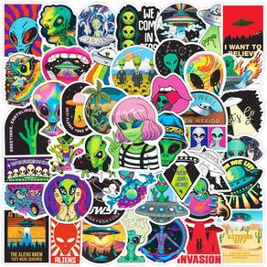 Adesivos de vinil impermeável Aliens Ufos Anime 50 unidades/lote