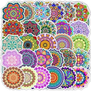 Material: papel e vinil Peso: 30-60 g Tamanho: 3-6 cm Quantidade: 50 unidades de adesivos de mandala exclusivos — Inclui 50 decalques vibrantes com temas de mandala com padrões geométricos coloridos, detalhados e simétricos para infinitas ideias decorativas. Vinil impermeável durável — Feito com material de vinil impermeável premium, resistente ao desbotamento e ao rasgo, fácil de aplicar e remover sem resíduos pegajosos. Decoração criativa de bricolage — perfeita para personalizar laptops, garrafas de água, capas de telefone, diários, álbuns de recortes, skates e malas com um toque boho ou espiritual. Desenhos artísticos e relaxantes — Com padrões intrincados e cores brilhantes, esses adesivos dão um toque meditativo e artístico aos seus itens pessoais. Ótimo para todas as idades — Ideal para adolescentes, estudantes e adultos que amam arte boêmia, projetos de bricolage ou desejam personalizar seus pertences com um toque estético.