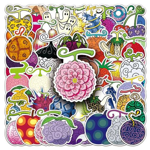 Adesivos Devils Fruits, vinil impermeável, anime, 52 unidades