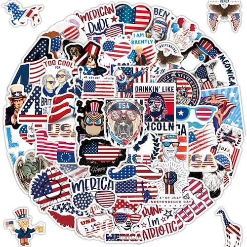Material: papel e vinil Peso: 30-60 g Tamanho: 3-6 cm Quantidade: 50 unidades Pacote de adesivos patrióticos — 50 peças de designs exclusivos com bandeiras dos EUA, águias carecas, fogos de artifício, “Deus abençoe a América” e slogans de 4 de julho para celebrar o Dia da Independência em grande estilo. Duráveis e impermeáveis — Feitos de material de vinil premium, esses decalques são à prova d'água, resistentes ao sol e removíveis sem deixar resíduos pegajosos, garantindo um uso duradouro. Decoração DIY versátil — perfeita para decorar laptops, skates, garrafas de água, diários, álbuns de recortes, bicicletas, capas de telefone e malas com um toque vermelho, branco e azul. Diversão para todas as idades — Ótimos para crianças, adolescentes e adultos, esses adesivos patrióticos dão orgulho americano a itens pessoais, artesanato e atividades natalinas. Easy Peel & Stick — Aplicação rápida com forte aderência, tornando-os ideais para decorações sazonais de festas, projetos de sala de aula e eventos do Dia da Independência.