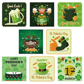 Desenhos clássicos com tema irlandês — Inclui 8 adesivos festivos de vinil com ícones do Dia de São Patrício, como chapéus de duende, potes de ouro, canecas de cerveja, trevos, tambores e esquemas tradicionais de cores verdes. Impermeável e durável — Feito de vinil de alta qualidade que é à prova d'água e resistente a rasgos, perfeito para aplicações em festas internas e externas. Fácil aplicação e remoção limpa — Os decalques descascáveis aderem bem a garrafas, copos, potes ou superfícies lisas e são removidos facilmente sem deixar resíduos pegajosos. Perfeito para festas do Dia de São Patrício — Melhore sua celebração com tema irlandês, configuração de bar ou evento de 17 de março com rótulos alegres que adicionam espírito natalino à decoração de copos ou mesas. Pacote compacto e leve — Cada decalque tem de 5 a 8 cm de tamanho e o pacote completo pesa de 40 a 45 g, o que o torna conveniente para armazenar, transportar ou incluir em kits de decoração sazonais.