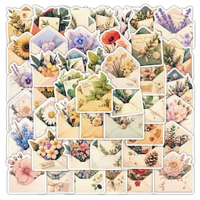 Estilo vintage elegante — apresenta 60 adesivos lindamente desenhados em forma de envelopes cheios de flores, selos de cera, letras e elementos naturais, tudo em uma paleta retrô suave. Material de vinil de alta qualidade — Feito de vinil durável e impermeável que é resistente a rasgos e não deixa resíduos pegajosos quando removido. Adequado para uso a longo prazo. Uso versátil — Ideal para decorar diários, garrafas de água, laptops, embalagens, álbuns de recortes e caixas de armazenamento, adicionando um toque nostálgico e artístico. Pronto para usar — Cada decalque mede de 5 a 8 cm, é cortado individualmente e pronto para ser descascado e colado em superfícies lisas e limpas para uma aplicação fácil. Perfeito para projetos criativos — Uma ótima opção para entusiastas do diário, criadores de cenas e qualquer pessoa que adore criar decorações com temas vintage.