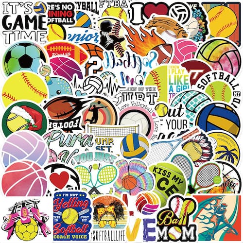 Material: papel e vinil Peso: 30-60 g Tamanho: 3-6 cm Quantidade: 100 unidades 50 adesivos vibrantes com temas esportivos, com designs de vôlei, beisebol, futebol, tênis, futebol e basquete, perfeitos para atletas e entusiastas do esporte. O material de vinil impermeável e durável garante que esses adesivos resistam ao uso externo e permaneçam vibrantes por longos períodos. Ótimo para personalizar uma variedade de itens, incluindo laptops, garrafas de água, skates, cadernos e até mesmo material escolar. Fáceis de aplicar e remover, sem deixar resíduos, o que os torna perfeitos para uso temporário sem danificar as superfícies. Ideal para crianças, adolescentes e adultos que amam esportes, esses adesivos são ótimas decorações para quartos, garrafas de água e equipamentos esportivos.