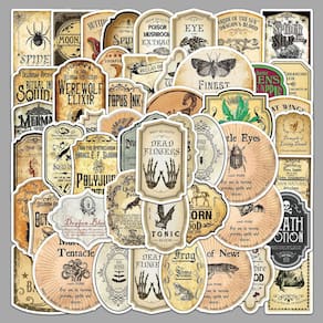 Material: papel e vinil Peso: 30-60 g Tamanho: 3-6 cm Quantidade: 50 unidades Tema de etiqueta de poção 50 peças de designs exclusivos de rótulos de poções com caveiras, ervas, elixires, ingredientes mágicos e estética gótica de boticário. Vinil impermeável durável Feito de material de vinil de PVC premium, impermeável, resistente ao sol e à prova de desbotamento, perfeito para decoração de longa duração em ambientes internos e externos. Design fácil de aplicar, descascar e colar com forte aderência, fácil de remover sem deixar resíduos pegajosos, seguro para laptops, garrafas, cadernos e estojos. Decoração criativa de bricolage. Ideal para decorar álbuns de recortes, diários, agendas, garrafas de água, skates, malas e telefones com uma atmosfera retrô mística. Estilo retrô Witchy Projetado especialmente para adolescentes e adultos que gostam de estética vintage inspirada em poções, elementos de fantasia e designs de inspiração gótica.