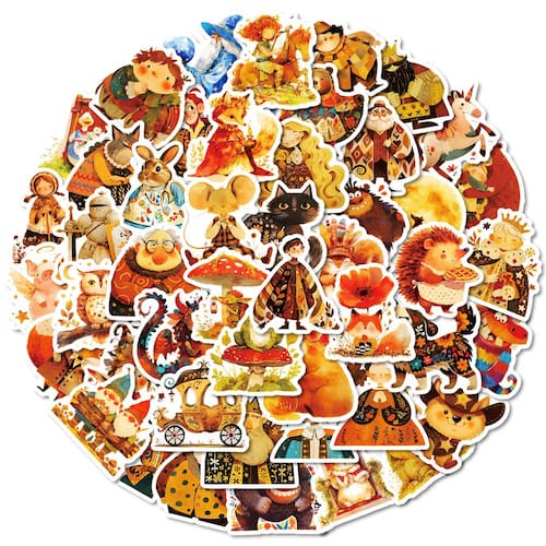 Material: papel e vinil Peso: 30-60 g Tamanho: 3-6 cm Quantidade: 50 unidades 50 peças de adesivos de contos de fadas Inclui 50 peças de decalques de vinil desenhados à mão com personagens de contos de fadas como princesas, magos, animais, castelos, cogumelos e criaturas fantásticas. Vinil impermeável premium Feitos de material de PVC durável, esses adesivos são à prova d'água, à prova de sol e de longa duração para uso decorativo diário. Fácil de descascar e reutilizar O suporte autoadesivo facilita a aplicação e pode ser removido sem resíduos pegajosos, seguro para todas as superfícies. Ampla aplicação Perfeita para laptops, garrafas de água, álbuns de recortes, diários, skates, guitarras, capas de telefone e projetos de bricolage. Estilo de desenho animado extravagante Ilustrações brilhantes e criativas criam uma atmosfera mágica de conto de fadas, ideal para crianças, adolescentes e amantes do artesanato.