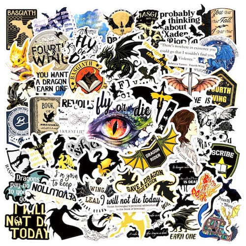 Adesivos Fourths Wings Dragons em vinil impermeável (50 unidades)