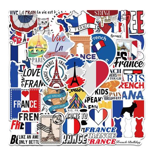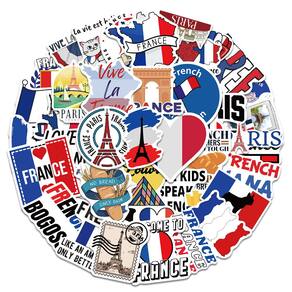 Adesivos Frenchs Elements Travels, vinil impermeável, 50 unidades
