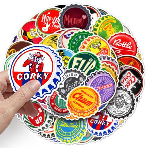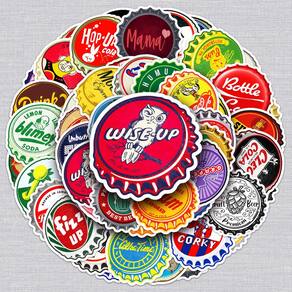 Adesivos, garrafas retros, tampas, vinil impermeável, 50 unidades/lote
