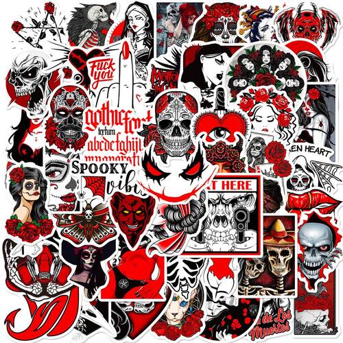 Material: papel e vinil Peso: 30-60 g Tamanho: 3-6 cm Quantidade: 50 unidades Inclui 50 adesivos sombrios e ousados com temas de terror gótico com demônios, caveiras, rosas e desenhos punk assustadores em vermelho e preto. Feito de vinil impermeável de alta qualidade, garantindo durabilidade e resistência à água, arranhões e desbotamento para uso duradouro. Ideal para decorar laptops, garrafas de água, álbuns de recortes, diários e projetos de bricolage com um toque gótico e assustador. O suporte adesivo forte permite fácil aplicação e remoção sem deixar nenhum resíduo. Perfeito para entusiastas do terror, fãs de gótico e qualquer pessoa que adora designs escuros e ousados para seus itens pessoais ou decorações temáticas.