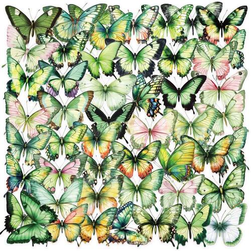 Material: papel e vinil Peso: 30-60 g Tamanho: 3-6 cm Quantidade: 50 unidades 🦋 Tema realista de borboleta verde — Conjunto de 50 adesivos com desenhos de borboletas verdes naturais com detalhes em gradiente suave para um estilo decorativo fresco e elegante. Material PET transparente — Feitos de filme PET durável com bordas transparentes, esses decalques se misturam perfeitamente às superfícies e são à prova d'água para uso duradouro. Easy Peel & Stick — O design autoadesivo permite uma aplicação rápida em laptops, diários, garrafas, capas de telefone, malas e muito mais. Remoção sem resíduos — Os adesivos podem ser removidos sem deixar marcas de cola, facilitando a alteração ou o reposicionamento dos designs. Decoração DIY perfeita — Ótima para crianças, estudantes e adultos decorarem cadernos, agendas, álbuns de recortes, skates e acessórios do dia a dia.