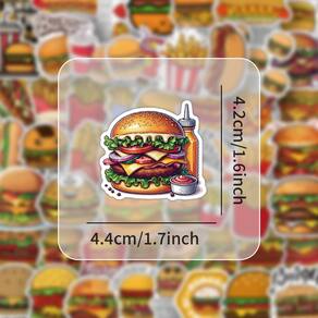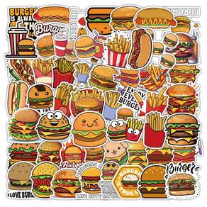 Adesivos, hambúrgueres, batatas fritas, vinil impermeável, anime, 54 unidades