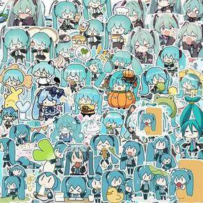Adesivos Hatsune Miku, vinil impermeável, anime, 100 unidades