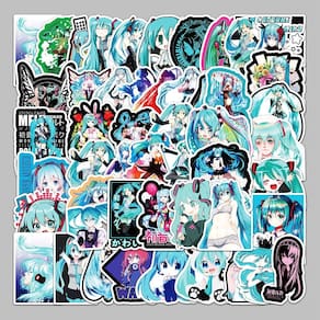 Adesivos Hatsune Miku, vinil impermeável, anime, 50 unidades