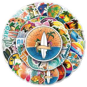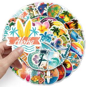 Adesivos havaianos, praias, cenários, vinil impermeável, 50 unidades
