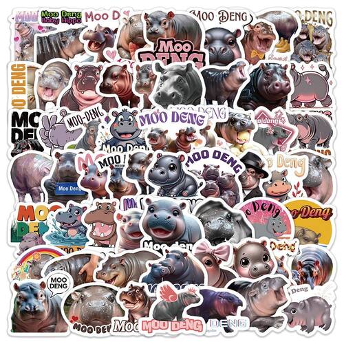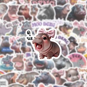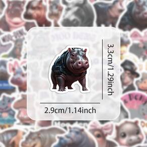 Adesivos Hippopotamus, vinil impermeável, anime, 60 unidades