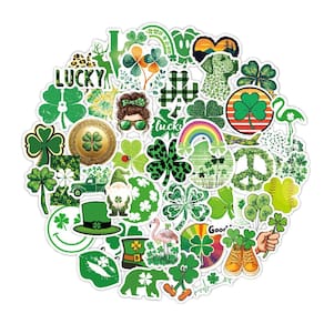 Material: papel e vinil Peso: 30-60 g Tamanho: 3-6 cm Quantidade: 50 unidades Adesivos de vinil de alta qualidade: feitos de material de vinil durável e impermeável, esses adesivos Lucky Clover são perfeitos para uso interno e externo. Variedade de designs divertidos: inclui uma mistura de trevos, trevos de quatro folhas e gráficos adoráveis, como uma ovelha com detalhes em trevo, oferecendo um toque divertido. Perfeito para decoração: ideal para personalizar laptops, garrafas de água, skates, capas de telefone, malas e muito mais. Fácil de aplicar e remover: esses adesivos são fáceis de colar em várias superfícies e podem ser removidos sem deixar resíduos, o que os torna perfeitos para projetos de bricolage. Ótimo para todas as idades: um pacote de adesivos divertido e sortudo para todos, de crianças a adultos, trazendo positividade e charme aos seus pertences.