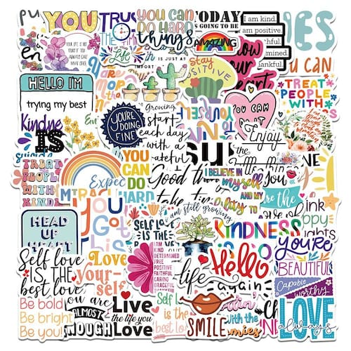 Material: papel e vinil Peso: 30-60 g Tamanho: 3-6 cm Quantidade: 100 unidades0 Desenhos exclusivos: inclui 100 adesivos de citações motivacionais diferentes com fontes coloridas e layouts criativos para inspirar positividade todos os dias. Durável e impermeável: feito de material de vinil de alta qualidade, impermeável, resistente ao desbotamento e à prova de arranhões para uso duradouro em várias superfícies. Fácil de aplicar e remover: aplicação peel-and-stick com forte adesão, mas sem resíduos quando removida, perfeita para redecorar a qualquer momento. Cenários de uso amplo: ótimo para laptops, malas, garrafas de água, diários, skates, álbuns de recortes, capas de telefone, bicicletas e muito mais. Perfeito para adolescentes e adultos: incentiva a autoexpressão, positividade e motivação, ideal para material escolar, itens de escritório e acessórios pessoais.