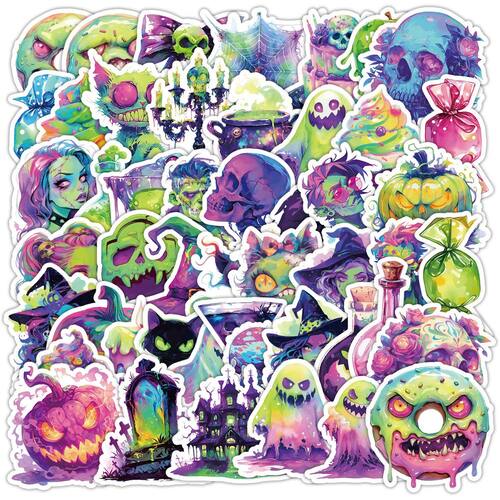 Adesivos Neons Halloweens em vinil impermeável Anime S (50 unidades)