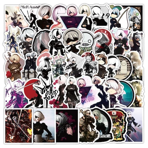 Adesivos Niers Automatas, vinil impermeável, anime, 52 unidades
