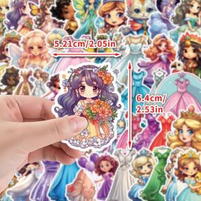 Material: papel e vinil Peso: 30-60 g Tamanho: 3-6 cm Quantidade: 50 unidades Tema de vestido de princesa — Inclui 50 adesivos adoráveis com princesas de desenhos animados, personagens de fadas, vestidos e coroas, perfeitos para crianças e amantes do estilo kawaii. Vinil impermeável de alta qualidade — Material de vinil durável, à prova d'água e resistente ao desbotamento garante uma decoração duradoura em qualquer superfície. Uso em várias cenas — Ideal para decorar laptops, álbuns de recortes, diários, skates, garrafas de água, guitarras, capas de telefone, artigos de papelaria e muito mais. Fácil aplicação e remoção — Adesivo forte para uma colagem segura, mas removível sem deixar resíduos ou danos pegajosos. Ótimo para bricolage e recompensas — perfeito para artesanato infantil, projetos escolares, diários, artigos de decoração para festas ou como adesivos de recompensa para professores.