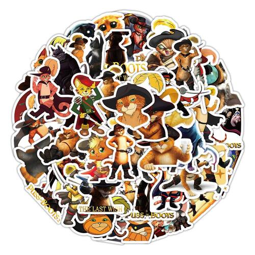 Adesivos Puss in Boots, anime, vinil impermeável, 50 unidades
