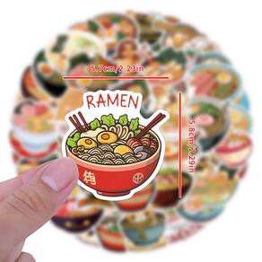 Adesivos Ramens, vinil impermeável, anime, 55 unidades/lote, 5-7 cm