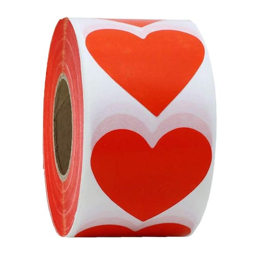 - Adesivos autoadesivos em forma de coração vermelho, adesivos de coração grandes de 2", 500 etiquetas por rolo.
