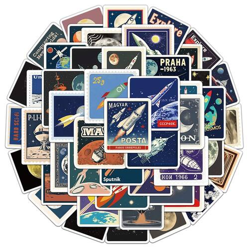 Material: papel e vinil Peso: 30-60 g Tamanho: 3-6 cm Quantidade: 50 unidades e 50 adesivos espaciais retrô exclusivos — Inclui foguetes, luas, satélites, pôsteres espaciais de estilo vintage e cenas planetárias em um design de selo nostálgico. Estética vintage clássica — Inspirada na arte de exploração espacial de meados do século, perfeita para colecionadores, fãs de ficção científica e entusiastas criativos de bricolage. Vinil impermeável e durável — Decalques de vinil de alta qualidade com superfície impermeável e resistente ao desbotamento, adequados para uso interno e externo. Perfeito para várias superfícies — cole em laptops, garrafas de água, diários, skates, malas, telefones, álbuns de recortes e muito mais. Livre de resíduos e fáceis de usar — Adesivos reposicionáveis que são removidos de forma limpa sem deixar cola — ótimos para projetos de decoração ou arte.