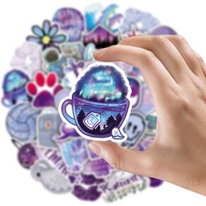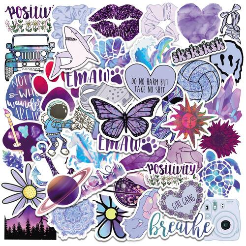 Adesivos, roxos, flores, borboletas, vinil impermeável, 50 unidades