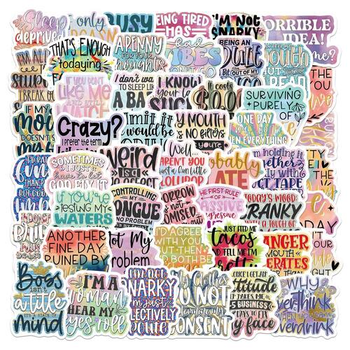 Material: papel e vinil Peso: 30-60 g Tamanho: 3-6 cm Quantidade: 50 unidades O pacote Sarcastic Quote inclui 50 adesivos com frases espirituosas, sarcásticas e sarcásticas em designs coloridos, perfeitos para quem tem uma personalidade divertida e bem-humorada. Vinil impermeável durável Feito de material de PVC premium com revestimento à prova d'água e resistente a UV para manter as cores brilhantes e evitar descamação ou desbotamento. Ampla aplicação Ideal para decorar laptops, garrafas de água, skates, malas, capas de telefone, diários, álbuns de recortes, guitarras e outras superfícies lisas. Fácil de aplicar e remover O adesivo forte garante que os adesivos permaneçam no lugar, mas são removíveis sem deixar resíduos, seguro para várias superfícies. Perfeito para adolescentes e adultosÓtimo para expressar humor, atitude e personalidade; ideal para estudantes, funcionários de escritório e qualquer pessoa que goste de citações sarcásticas.