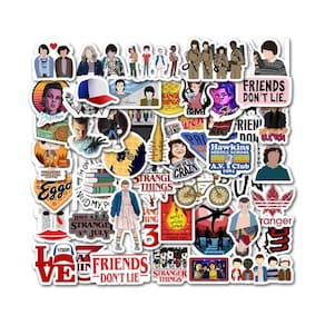 50 adesivos de suas coisas estranhas favoritas, todos autoadesivos, perfeitos para colar em carros, notebooks, smartphones, notebooks, geladeira, tablet, PC, paredes ou na frente.\ N Tamanho: cerca de 5 a 8 cm\ N Material: papel de carta adesivo\ impressão em alta qualidade\ N O pacote inclui:. São 50 unidades com designs de Stranger Things sem repetição **.. Super Bacanes autoadesivos.** Modelos aleatórios de acordo com o conjunto de imagens publicado. Remessas para todo o Chile. Rápido e seguro.