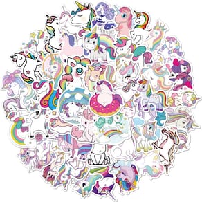 Desenhos vibrantes com tema de unicórnio — Inclui 50 divertidos decalques de unicórnio em uma variedade de estilos, expressões e poses, com nuvens, arco-íris, estrelas, corações e mais rabiscos divertidos. Material impermeável durável — Feitos de vinil premium, esses adesivos são à prova d'água e resistentes às intempéries, o que os torna adequados para decoração interna e externa. Áreas de aplicação versáteis — Perfeitas para personalizar garrafas de água, laptops, skates, guitarras, malas, cadernos, álbuns de recortes e mais superfícies. Fácil de aplicar e remover — Esses decalques se soltam facilmente e grudam suavemente, e podem ser removidos de forma limpa, sem deixar o adesivo para trás. Tamanho ideal para artesanato — cada adesivo mede aproximadamente 5 a 8 cm, é compacto e leve (peso total da embalagem: 40—45 g), perfeito para projetos infantis de bricolage ou decorações divertidas.