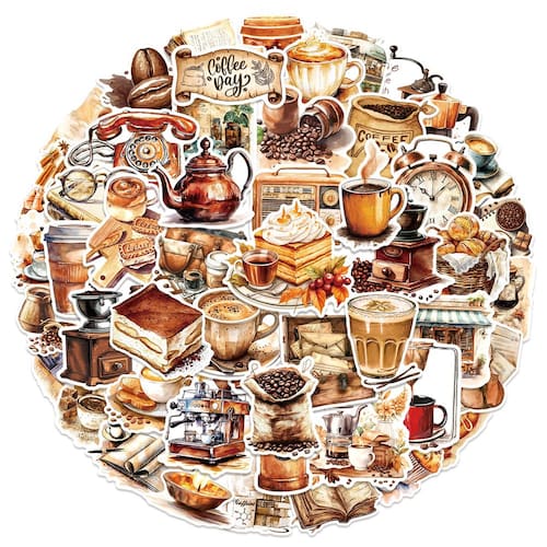 Charming Coffee Designs — Este conjunto inclui 50 adesivos exclusivos com tema de café de inspiração vintage, com xícaras de café, grãos, equipamentos e um ambiente aconchegante de café, perfeitos para os amantes do café. Vinil impermeável de alta qualidade — Feitos de vinil durável, esses adesivos são à prova d'água e resistentes ao desbotamento, o que os torna ideais para personalizar sua capa de celular, laptop, garrafas de água e muito mais. Perfeito para projetos de bricolage — Adicione um toque da cultura do café aos seus álbuns de recortes, diários, agendas e projetos de bricolage com esses adesivos criativos e vibrantes. Fácil de aplicar e remover — Esses adesivos são fáceis de descascar e colar em várias superfícies e podem ser removidos de forma limpa, sem deixar nenhum resíduo pegajoso. Ótimos para todos os entusiastas do café — Seja você um barista, um conhecedor de café ou apenas alguém que gosta de uma xícara de café, esses decalques são perfeitos para decorar seus pertences com um estilo nostálgico e retrô.