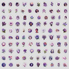 Adesivos: violetas, flores, plantas, vinil impermeável, 100 unidades