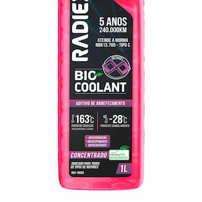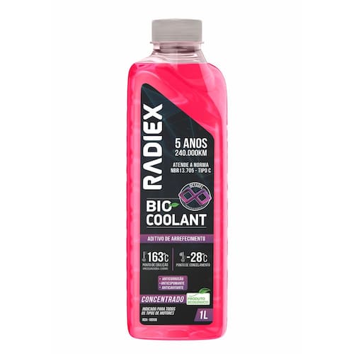 O ADITIVO DE ARREFECIMENTO OCTAGEL EXTEND LIFE RDX-18058 foi especialmente desenvolvido com glicóis e mistura de carboxilatos, para proteger por muito mais tempo os componentes metálicos do sistema de arrefecimento de motores da linha leve, pesada e estacionários. Além disso, ele prolonga a vida útil dos motores, oferece excelente proteção contra a corrosão e a cavitação, inibe o ressecamento das mangueiras, eleva o ponto de ebulição, baixa o ponto de congelamento, lubrifica a bomba d'água e evita a formação de espuma. Possibilita intervalos de troca de até 5 anos ou 240.000km. A ADITIVO DE ARREFECIMENTO EXTEND LIFE OCTAGEL BIO COOLANT RDX-18058, atende as normas: ABNT NBR 13.705 Tipo C, orgânico, ASTM D-3306 e especificação norma da montadora GMW17918. Antes de colocar o ADITIVO DE RADIADOR EXTEND LIFE BIO COOLANT RDX-18058, faça a limpeza completa no sistema de arrefecimento com água pura. Coloque o produto no vaso expansor ou no radiador (Conforme o caso), e complete com água desmineralizada. Ex: Para um sistema de 5 litros, colocar 5 litros, coloque 2L do produto e 3 de água desmineralizada. . Atenção: Não misture com outros fluidos ou soluções.