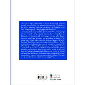 Este livro supre uma lacuna do estudo de estratégia no setor público, como recursos para abordar o tema estratégia organizacional, sendo, para isso, utilizadas fundamentações teóricas, metáforas organizacionais e discussões de estudo de caso. A obra trata da complexidade dos ecossistemas organizacionais da administração pública, explicando a gestão estratégica de pessoas, os impactos dos agentes políticos nas estratégias governamentais; os apontamentos relacionados aos tipos de estratégias referentes à realidade do Brasil, por intermédio da estratégia de cooperação e colaboração; o debate a respeito do potencial da transformação digital e seu impacto nas organizações públicas; e finaliza analisando as tendências e perspectivas para que as estratégias da administração pública moderna possam alcançar resultados efetivos.