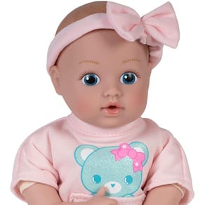 Vem com um amigo spirit animal rebanho! Tamanho: 8,5"Boneca Adora Inflamar seu espírito interior Animal! Um bebê Seja Boneca Brilhante! Tom de pele clara/olhos azuis Eu posso chupar meu polegar Roupa removível Fresco perfume de pó de bebê 100% Máquina Lavável Coletar todos eles - há 5 Be Bright Tots & Friends para completar! Incentiva a nutrição, fingir jogar Ages 1 e até "Nascidos juntos, melhores amigos para sempre!" Ela é tudo doce e divertido, conheça um amigo como o Bebê Urso! Esta doce mini boneca gosta de brincadeiras ao ar livre e passeia com seu amigo animal espírito Urso. Sua personalidade lúdica inspira todos a #BePositive e celebra as melhores coisas da vida. Nascidas juntas, ela nunca fica sem seu mini brinquedo de urso que guia e cuida à medida que esta boneca envelhece para se tornar a ADORAble Be Bright Doll . Adora Be Bright Tots & Friends Baby Bear é um conjunto de bonecas usando uma faixa de arco rosa e uma camisa de malha onesie com um bolso dianteiro e brilhante brilhante gráfico que se assemelha ao mini brinquedo de urso rebanho com quem ela chega. Esta boneca macia tem 8,5 polegadas da cabeça aos de frente, feita para as mãozinhas segurarem e amarem. Ela tem olhos azuis, cabelos e bochechas pintados à mão, e uma expressão de bebê de boca aberta para que ela possa chupar o polegar para ajudá-la a acalmar. Ela é 100% lavável por máquina com rosto macio e membros espremíveis feitos a partir do nosso vinil premium dando-lhe um perfume fresco de pó de bebê, tornando-a uma primeira boneca perfeita para seus pequenos. Ela também tem um fundo de feijão ponderado projetado para incentivar a nutrição, fingir brincar. Idades 1 ou mais. Dentro da coleção interativa "Seja Brilhante", cada brinquedo tem seu próprio espírito único animal, história & hashtag. Qualquer boneca, pelúcia e bolsa que você escolher (ou recolhê-los todos!), há um brinquedo Be Bright para todos. Hora de #BeBright e mudar o mundo juntos!