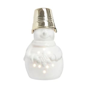 O Adorno Boneco de Neve Albito tem 14 cm e é produzido em cerâmica com led no interior e detalhes em dourado.