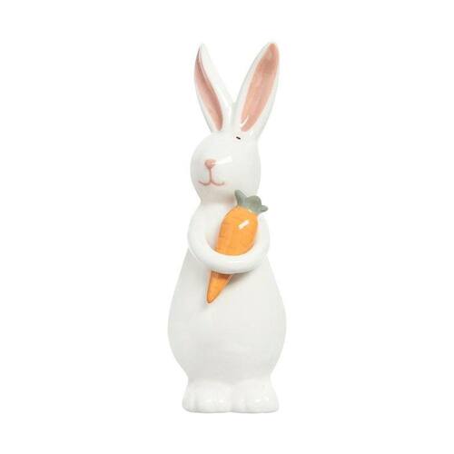 O Adorno Coelho Lupin é produzido em porcelana e pintado à mão na cor branca e dourado.