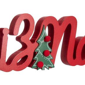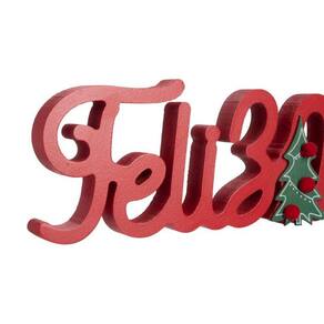 O Adorno Frase Feliz Natal tem 39 cm e é produzido em MDF com pintura feita à mão e base plana para garantir sua sustentação. As árvores que compõem o letreiro têm detalhe de bolinhas de feltro que remetem ao enfeite de bola.